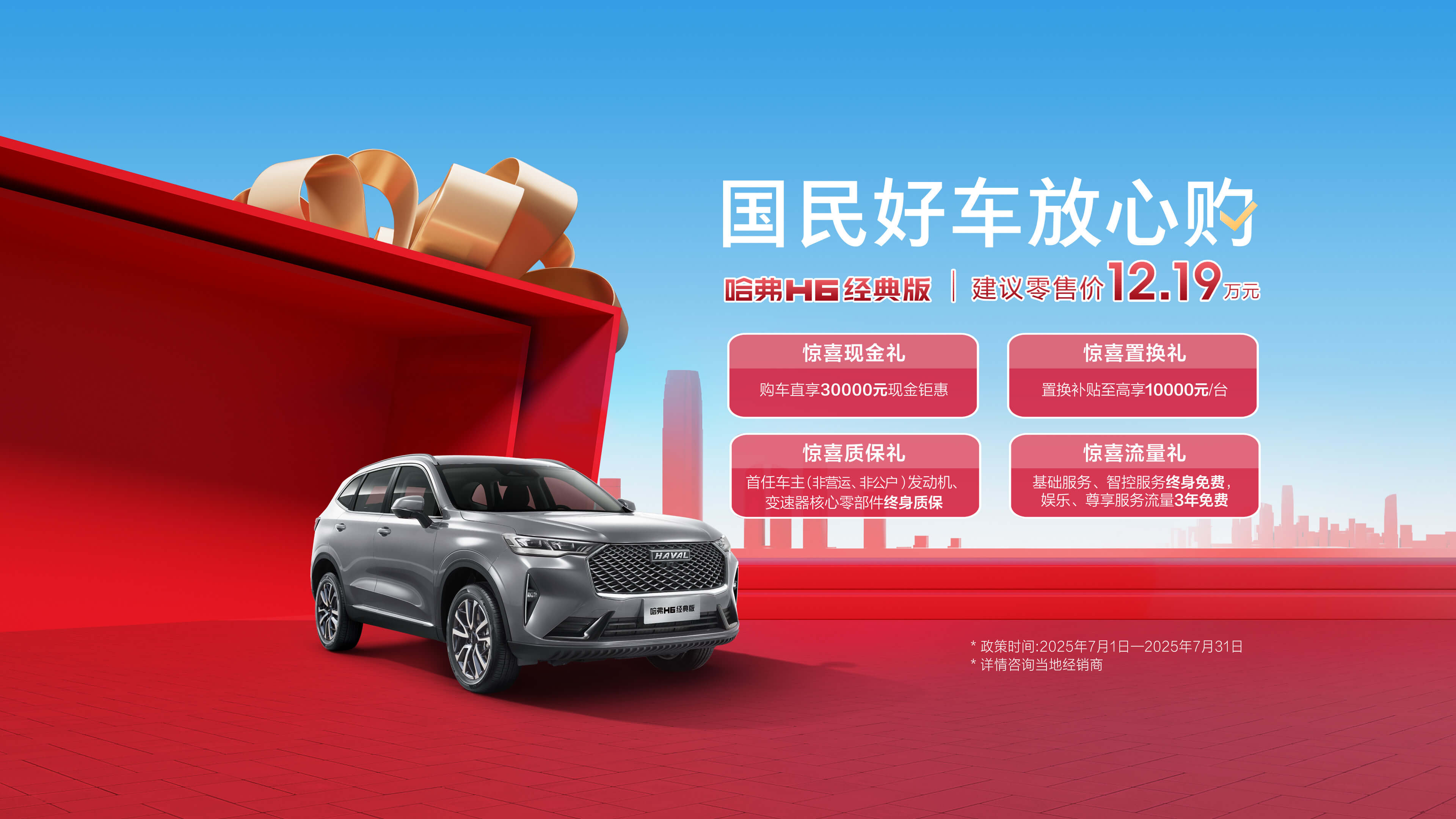 *政策有效期:2025年7月1日-2025年7月31日,具体政策内容详询当地经销商。